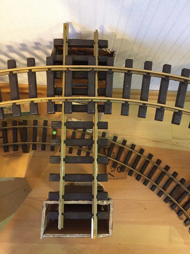 Bei Gleispfeilern liegen die Gleise nicht auf dem Schwellenbett auf, sondern direkt auf den Schienen an der Verbindung von zwei Gleisen. Das Schwellenpaar der Gleisverbindung wird im Pfeiler versenkt. Die Gleise können nicht aus dem Pfeilerbett herausrutschen. Das setzt voraus, daß auf dem Fußboden unter dem Pfeiler keine Schiene liegt. Die Anzahl der Pfeiler lassen sich durch die Konstruktion des " langen Gleises " verringern.