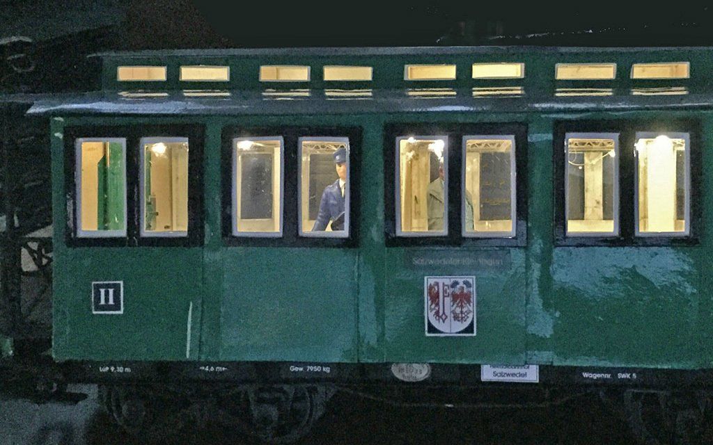 Die sehr helle Beleuchtung eines Personenwagens BC4i der Salzwedeler Kleinbahn